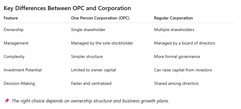 Understanding the differences between an OPC and a Corporation helps entrepreneurs choose the structure that best supports their long-term business goals.