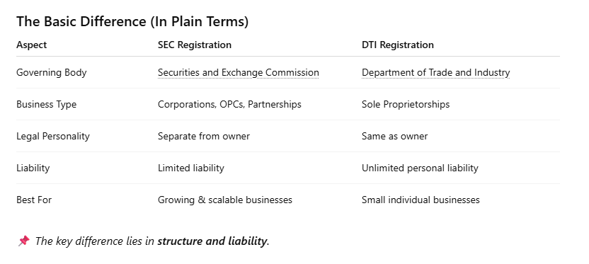 Let’s clarify—clearly, legally, and practically—the difference between SEC registration and DTI registration, and how to know which one applies to your business.